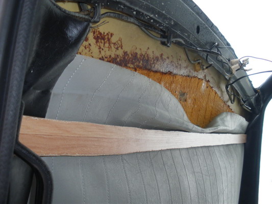 prise de l'extérieur. Après avoir chauffé avec un petit convecteur pendant une journée pour chasser l'humudidé, j'ai recollé avec une colle néoprène en spray! Très pratique, seul hic, c'est cher. Pas de photos de la finition pour l'instant